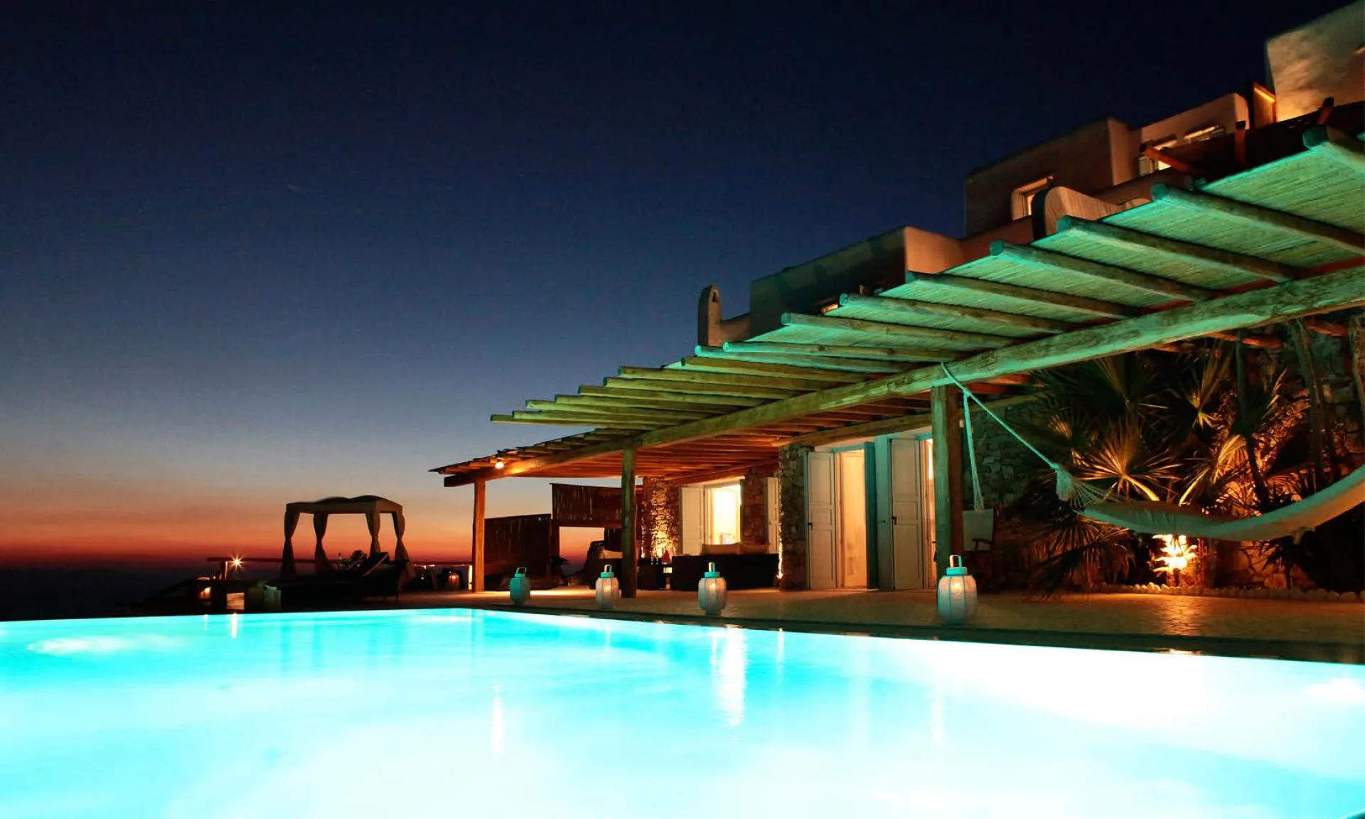 DescriptionIndependent and unique, Villa Alfa is built at the highest point of the island, offering the guests the most breathtaking view of the Aegean Blue and the whole picture of the island of Mykonos during the day and night.