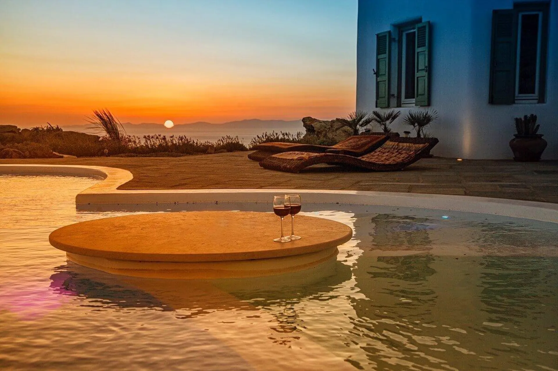 The villa offers BBQ facilities with a spacious dining area and a swimming pool with a breathtaking panoramic view of Mykonos town, Delos, Tinos, and Syros. It is surrounded by a carefully landscaped garden with succulent plants and aromatic flowers.