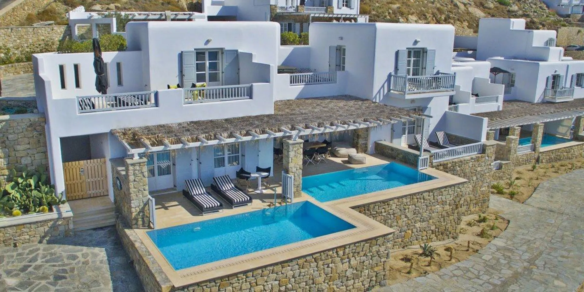 - Two private seawater infinity pools (20m² each) with sunbathing terrace