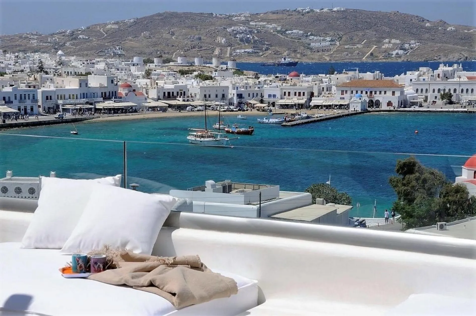 Your luxury Mykonos villa is a few steps from all the shops, bars, and waterfront restaurants of Mykonos Town, so you don’t need to worry about this extra drink before you get back to your comfortable bed! The villa is also a 5-minute drive to the new port, so don’t miss the chance to go on a luxury yacht tour around the neighboring islands. Believe us, this is going to be an experience you will long remember!