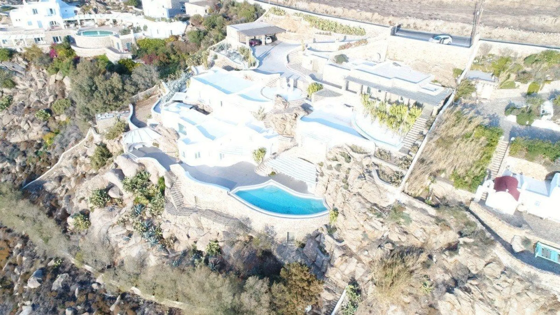 The main house is divided into two levels. On the entrance level located a luxurious and minimal living room with a breathtaking view of the Aegean sea, while on the upper level located the breakfast and dining area, able to seat up to 10 people, and a fully equipped kitchen where a private chef could create delicious dishes for you and your company. Feel free to choose the bedroom of your preference among the 5 upscale double bedrooms all with an en-suite bathroom. Two master bedrooms are situated in the main building with a king-size bed and a spectacular view of the sea. Three separate guest rooms provide privacy to your guests.