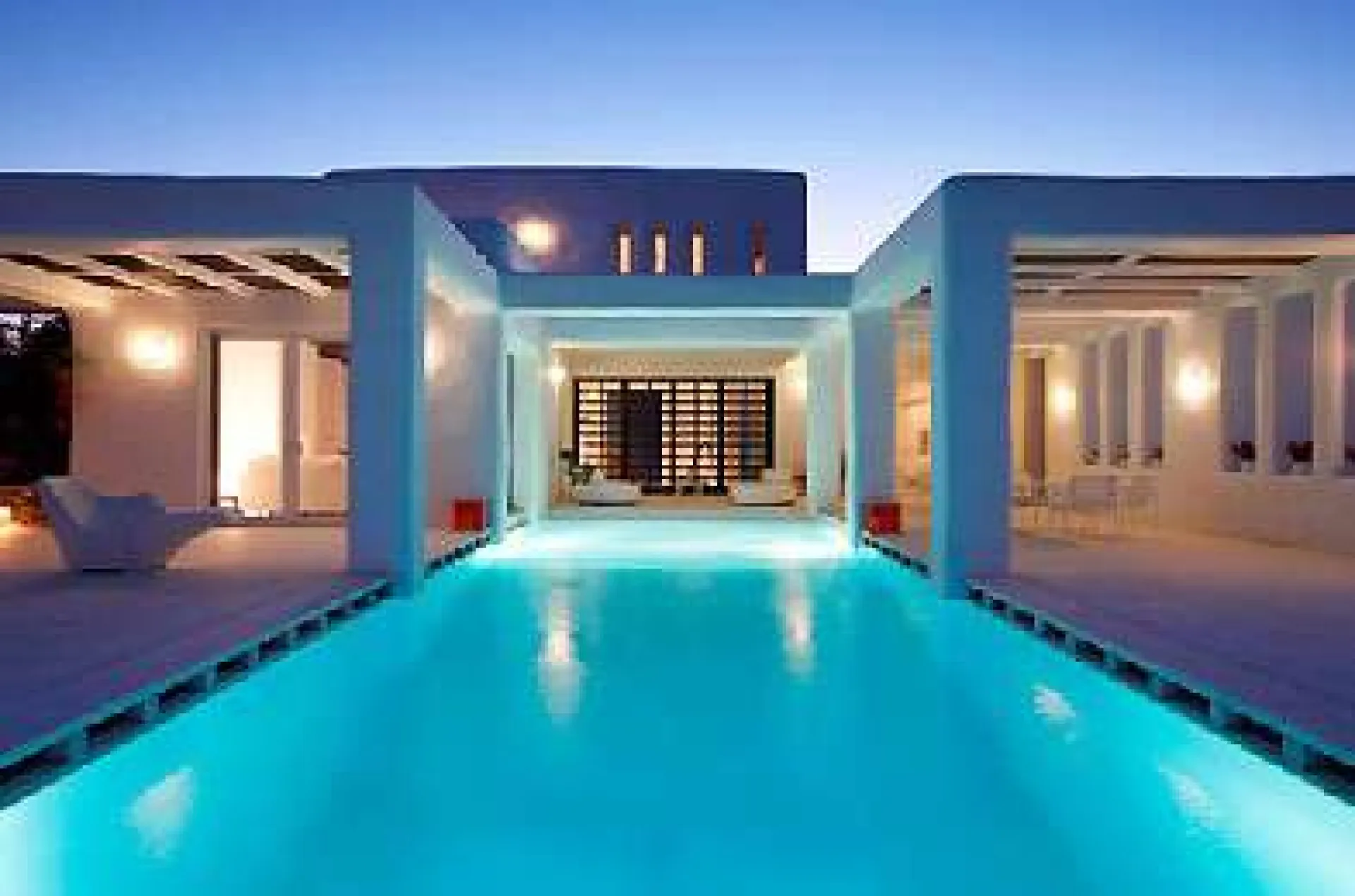 Built by famous architects, this house has been featured in French style and decoration magazines as an outstanding example of a modern interpretation of Cycladic architecture. Pool, outdoor and indoor spaces are all smoothly integrated, and sliding doors and pergolas enhance the feel of spaces flowing into each other. Materials have been carefully chosen to combine tradition with modernity and the owner’s collection of modern art complements the clean, pure lines of the house. All bedrooms have ceiling fans except a double room on the lowerlevel. All rooms have fitted screen windows. All bedrooms have A/C.