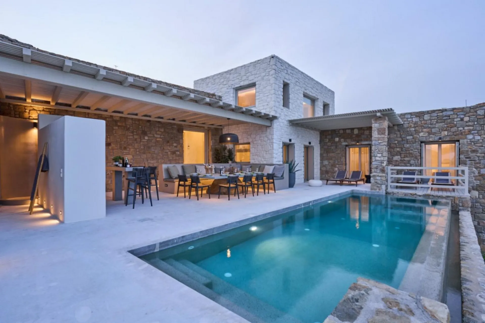 Set in Mýkonos City and only 500 metres from Kalo Livadi Beach, Villa Sheen offers accommodation with mountain views, free WiFi and free private parking. The property was built in 2022 and has air-conditioned accommodation with a patio. The accommodation features airport transfers, while a car rental service is also available. The spacious villa is fitted with 7 bedrooms, 7 bathrooms, bed linen, towels, a flat-screen TV with streaming services, a dining area, a fully equipped kitchen, and a terrace with sea views. Guests can take in the views of the pool from the balcony, which also has outdoor furniture. For added privacy, the accommodation has a private entrance and soundproofing. Guests can enjoy the infinity pool and garden at the villa. Loulos Beach is 1.3 km from Villa Sheen, while Mykonos Windmills is 10 km from the property. The nearest airport is Mykonos Airport, 6 km from the accommodation.The interior also includes the kitchen, living room and dining room with openings oriented to the sea, pool and the wonderful view, while on the same level accommodate an additional 2 bedrooms with openings to the outside. The master bedroom on the first floor is designed in suite style and provide a fantastic view from its private terrace On lower level you can find 3 (no view) bedrooms with en-suite bathroom.