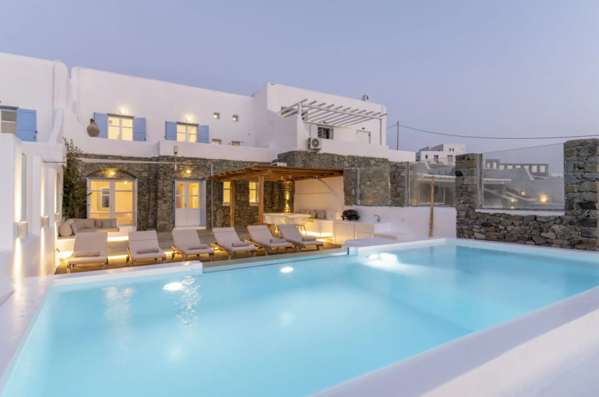 Its prime location provides the rare advantage of being just under 10 minutes from both Ornos Beach and the vibrant heart of Mykonos Town.