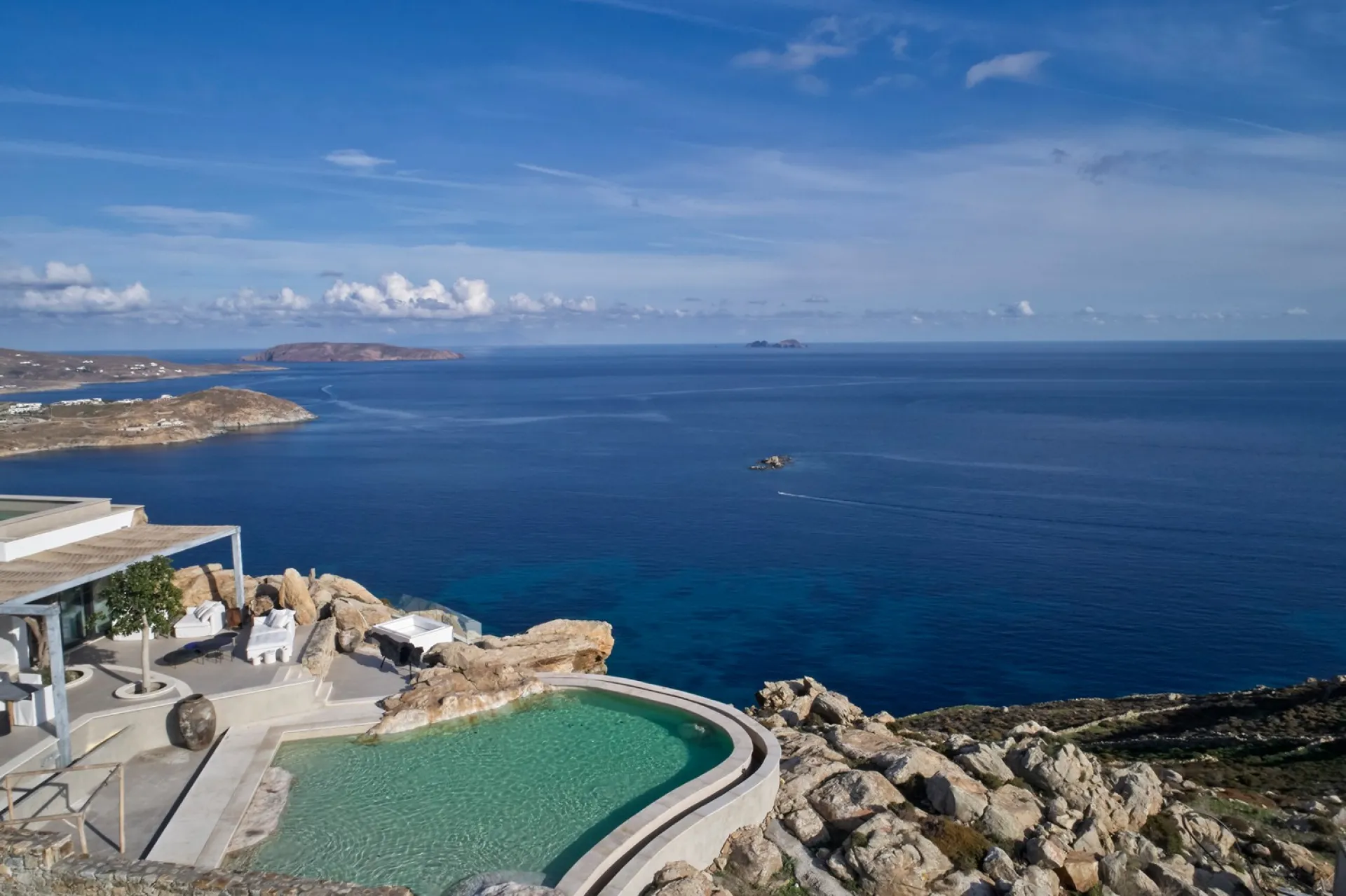 Walk the path that leads to the private terrace, unwind in the outdoor Jacuzzi or the pergola-shaded lounging area, and harness the energy from the infinity views of the Aegean Sea and the pristine Mykonian waters.