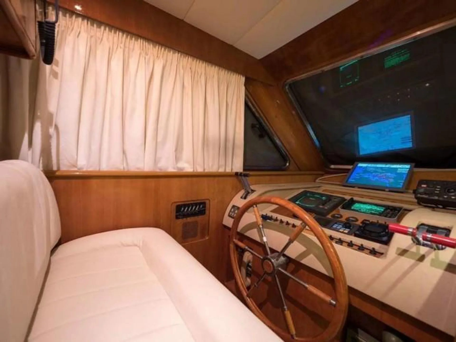 While it can accommodate 12 daily passengers, the yacht features three exceptionally decorated cabins that give the impression of a timeless elegance everyone will love. The cabins can host up to 6 overnight passengers. Thanks to wooden details and warm tones, you feel relaxed and comfortable staying here. Andiamo 54 also has a large common area in similar colors, perfect for spending time with friends and family. There is a fully-equipped kitchen on board as well.