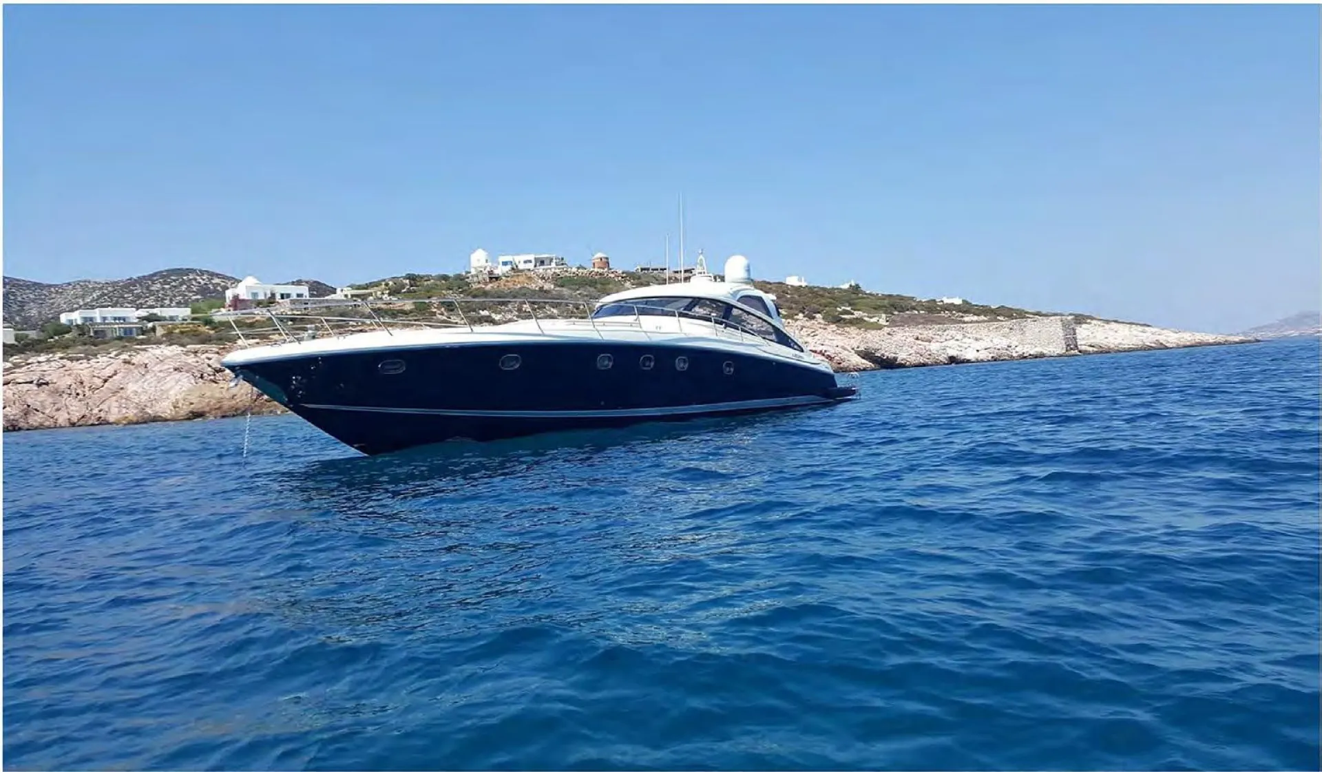 What Does Baia 63 Offer to Its Passengers? Let’s Take a Look at the AmenitiesSailing through the waters near Mykonos since 2004, Baia 63 is the perfect example of a luxury vessel suitable for extravagant Myconian life. Renting this beauty with a 2-person crew for your sailing trip can never be a wrong decision, as its amenities guarantee a safe and comfortable ride. This cruiser boasts a beautifully designed planing hull which allows it to glide on top of the water smoothly when it develops enough speed. GRP hull construction makes this boat practically indestructible.