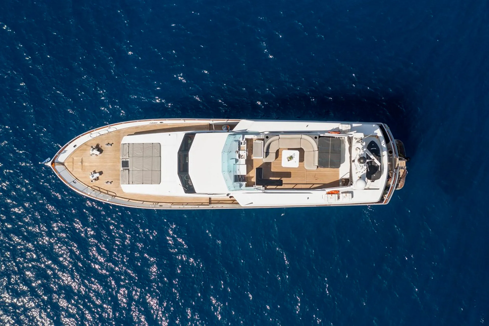 What Makes Cantieri di Pisa 90 an Excellent Yacht? Let’s Find Out Why You Should Rent It for Your TripCantieri di Pisa 90 has been welcoming passengers onboard since 1996, and it was refitted recently, in 2019. The cruising speed of Cantieri di Pisa 90 is 21-25 knots. Now looking better than ever and with a stellar performance, this motor yacht is one of the most popular renting options for larger groups. It can accommodate up to 12 overnight guests who will get to enjoy the fantastic sea views from the comfort of this excellent vessel. The yacht features a spacious deck with a lovely lounge area, dining table, and a gorgeous jacuzzi that will make your days on the sea more enjoyable.