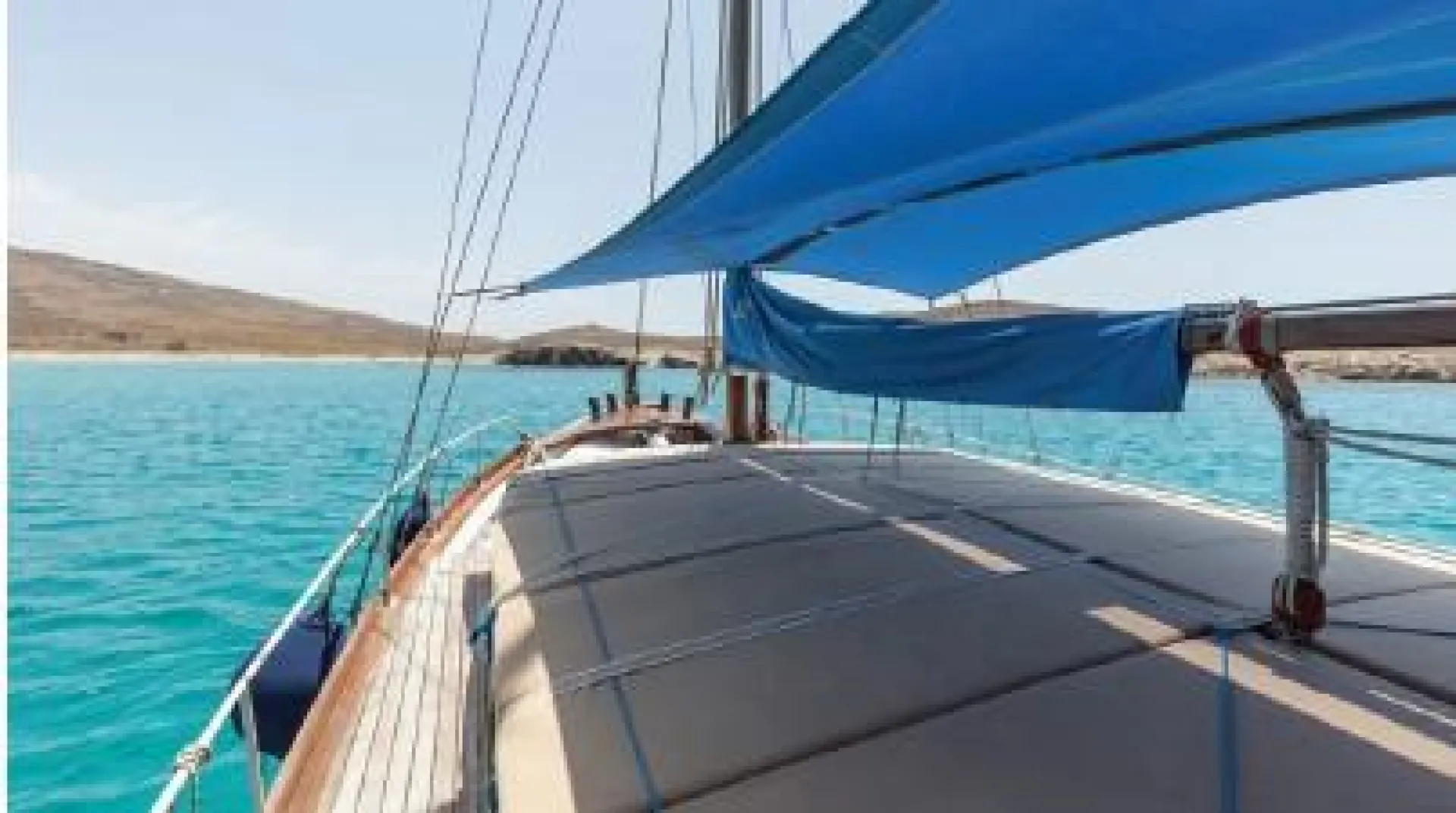 Kaique 53 Will Amaze You With Its Design and ComfortWith a length of 53 ft, Kaique 53 is one of the longer vessels in our fleet. Its large deck is suitable for fitting 22 passengers for a day tour. If you choose to spend a night on this boat, you should know that it has only two cabins. This makes it an ideal day charter – it is fully crewed, so your only responsibility is to gather your friends and family and enjoy the beauty and power of the Mykonos wind while sailing into the sunset and feeling like a true sailor. The cruise speed is 9.5 knots, which makes it suitable for short-distance tours around this enchanting island.